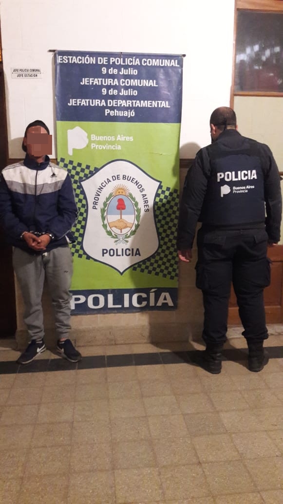 Informe policial: En el día de la fecha, personal de la estación de policía de 9 de Julio, alrededor de las 04.00 horas, procedió a la aprehensión de un masculino de 27 años y una femenina de 29 años de edad en calles Joaquín González y Eva Perón de este medio, quienes momentos antes previo saltar tapial y romper ventana de vivienda emplazada a escasos metros del lugar, amenazan con un cuchillo de cocina a propietario de la casa, un masculino de 45 años a quien le exigen la entrega de pertenencias no logrando sustraerle ningún efecto personal incautándole el cuchillo con el cual amenazaron a la víctima.