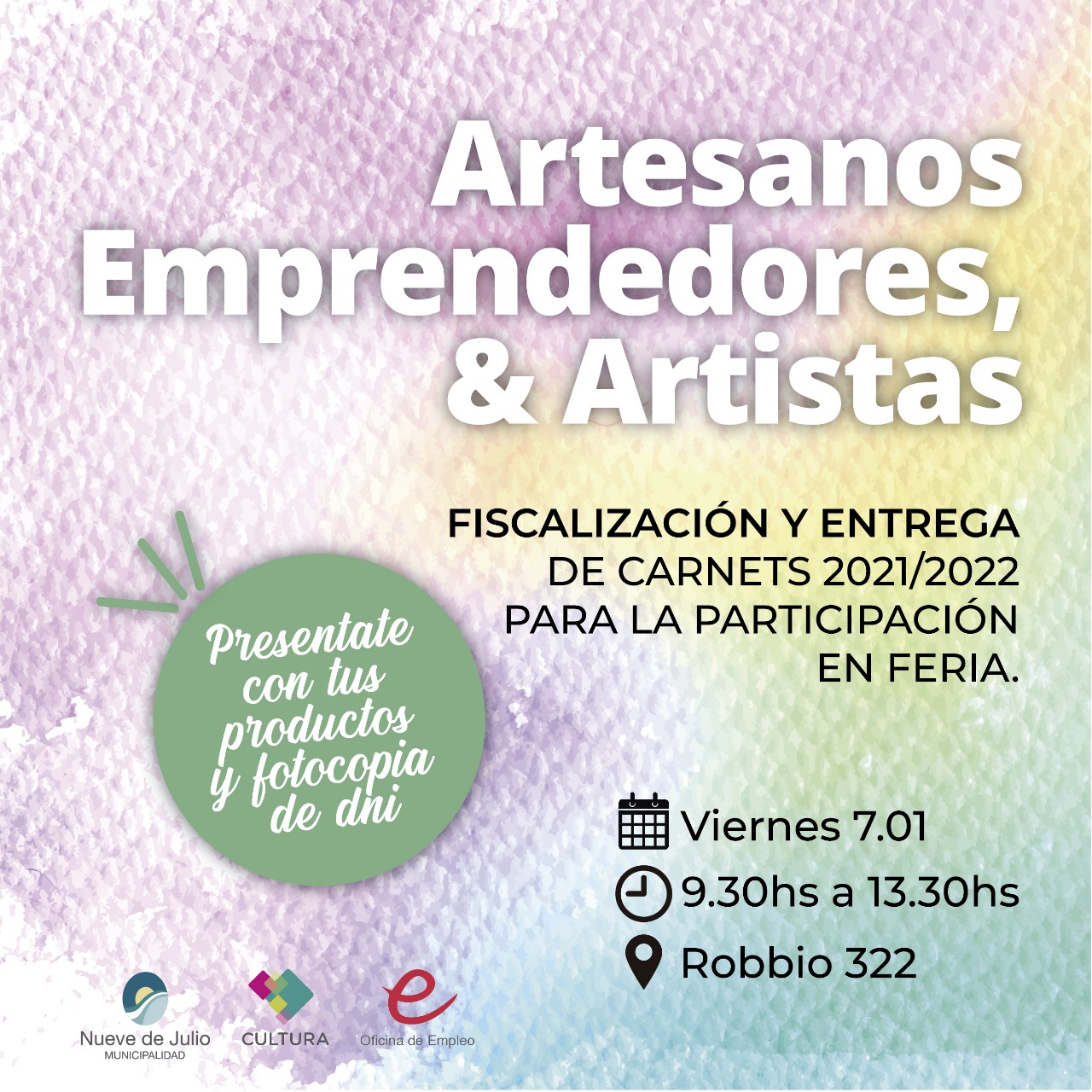 El viernes 7 de enero, se llevará a cabo la fiscalización y entrega de Carnets 2021 para artesanos y emprendedores de la ciudad, de 9,30 a 13 hs. en la sede de la FUN de calle Robbio 322.