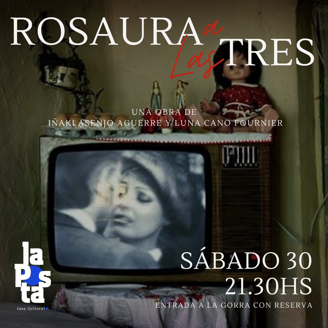 Este sábado 30 en la Posta casa cultural (Vedia 233) se repite la función de «Rosaura a las tres» una creación de Iñaki Asenjo Aguerre y Luna Cano Fournier. Es un espectáculo de humor, una comedia costumbrista en dónde Malena y Andrea (hermanas mellizas) harán de todo para poder ver la transmisión del último capítulo de la telenovela de las tres de la tarde, en dónde esperan el beso de Rosaura y su patrón. Malena y Andrea son hermanas, amigas, compinches… Se pelean, ríen, se enamoran y se rebelan.La función se realiza a la gorra, y se requiere de reserva previa que puede realizarse a las redes de la Posta casa cultural o al 2317-507259.