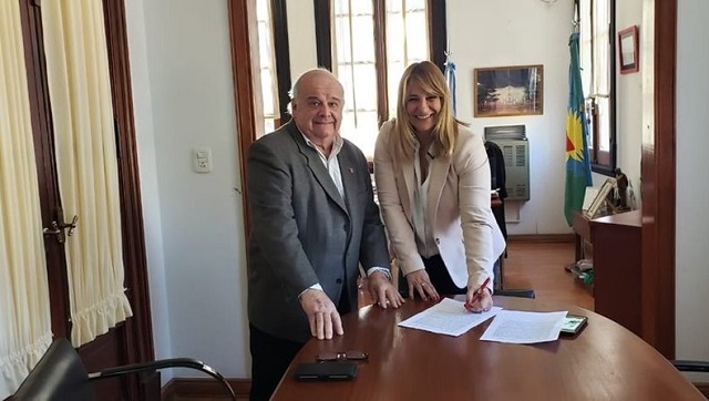 La intendenta Érica Revilla encabezó la firma del convenio de cesión de uso de predio municipal para permitir la puesta en marcha del Nuevo Frigorífico de Vacunos y Porcinos de General Arenales.