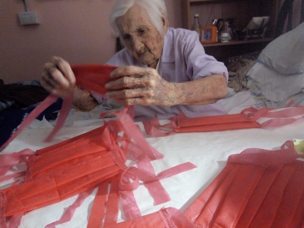 Como dije antes, la materia prima (tela e hilos) nos llega, donada, en piezas cerradas, desde Instituciones o firmas comerciales de nuestra ciudad. Luego pasa a manos de Mari Bonello, que es una modista de alta costura, muy conocida y muy querida, en nuestra comunidad, quien se encarga de fraccionar, en partes iguales, todo el material, muy prolijamente cortadas las telas, y los prepara en paquetes individuales, con hilos. Y aquí llega la parte en que, el Comisario mayor Javier Berton, pasa por la casa de Mari, levanta todos los paquetes y sale por la ciudad, dejando en cada casa esas telas que pronto se convierten en barbijos caseros o tapabocas.