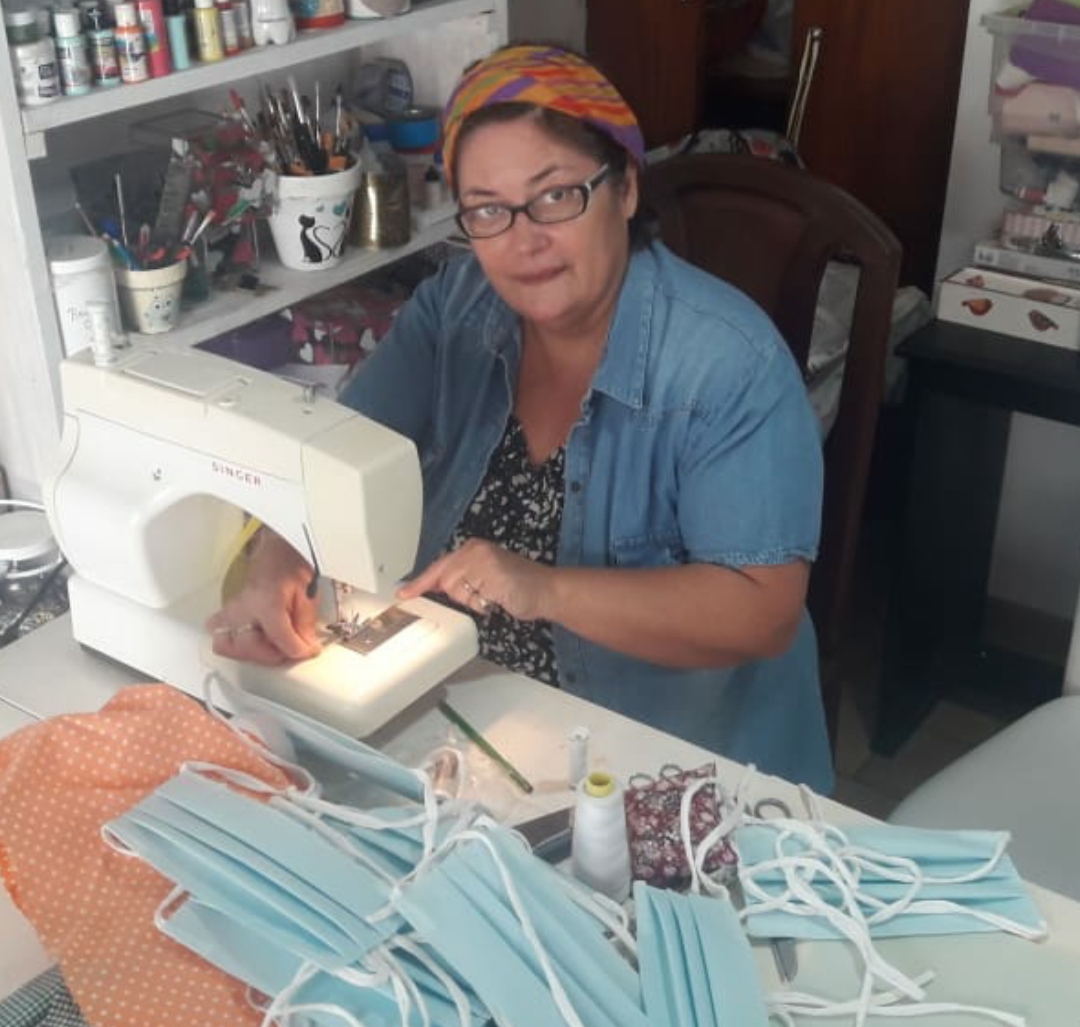 Cuando comenzó esta pandemia, mejor dicho, cuando llegó a nuestro país, nos empezamos a aterrar con las noticias que leíamos o veíamos en la tele, entonces me contacta una amiga, profesora, que trabaja en salud y me comentó que quería organizar algo, de antemano, para poder colaborar con suministros de barbijos por si llegara el virus a nuestra ciudad y no alcanzaran los insumos del mercado local. Publiqué en Facebook pidiendo personas que quisieran ayudar, con la mano de obra, la costura, pues las telas nos iban a llegar desde donaciones. Y así fue como, en pocos minutos, se ofrecieron un montón de chicas, algunas que sabían coser y otras no, pero, entre todas fuimos aprendiendo. Elaboramos un tutorial y así arrancamos a hacer todas lo mismo, barbijos o tapaboca de 3 capas con fliselina. Formamos un grupo de whatsapp donde nos organizamos diariamente.