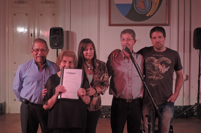 El director municipal de Cultura, Marcos Galvani entregó a la esposa del homenajeado, Sara Domínguez, y a su hija, la Dra. Silvia García, una copia del proyecto de resolución que nombra al guitarrista Abel García Ciudadano Distinguido Post Mortem.