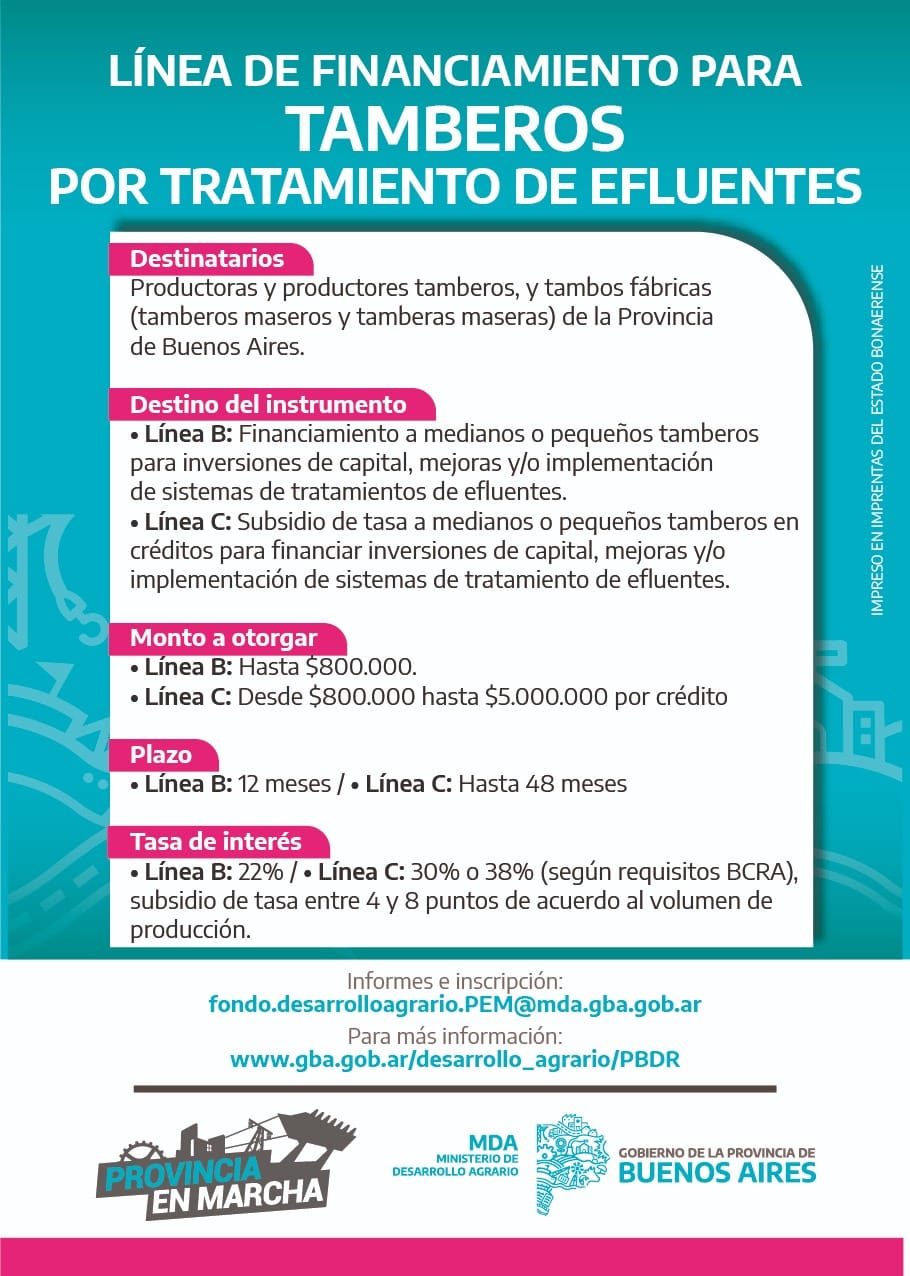 Destinatarios: productoras y productores tamberos y tambos fábricas (tamberos maseros y tamberas maseras) de la Provincia de Buenos Aires.