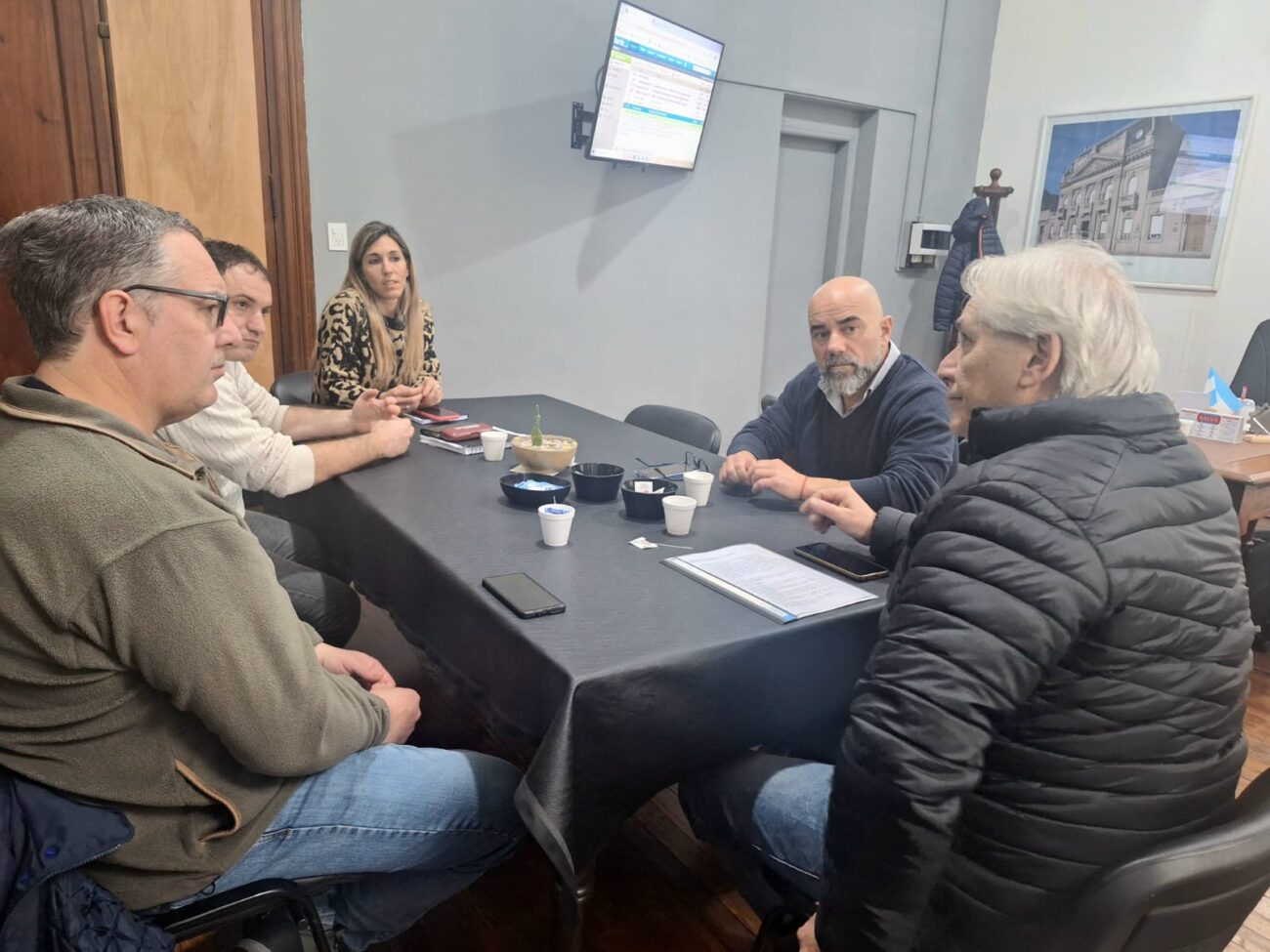 En la mañana del martes, la jefa de Gabinete de la Municipalidad de Nueve de Julio, Joselina Rodríguez, acompañada del secretario de Gobierno y Producción, Víctor Altare, y del secretario de Vivienda y Urbanismo, Martín Banchero; compartió un importante encuentro con autoridades de la Cámara de Comercio e Industria, representada por sus dirigentes Luis Valinoti y Diego Baztarrica.