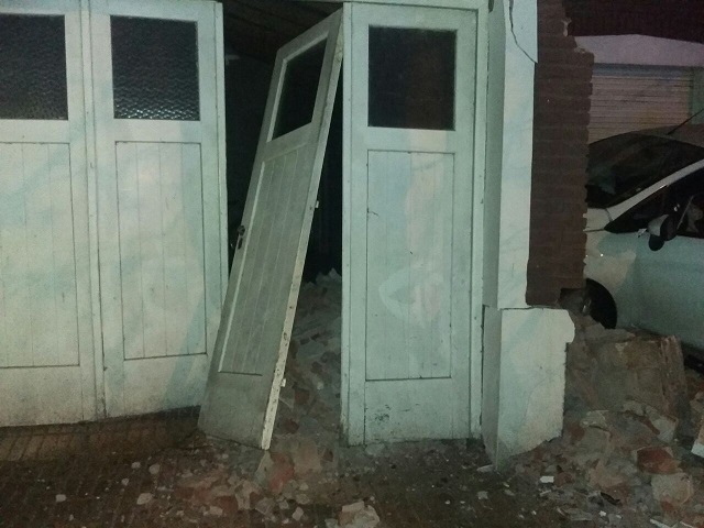 El pasado fin de semana y por causas que son materia de investigación policial, un Ford Fiesta de color blanco que circulaba por Avda. Tomás Cosentino, al intentar doblar por Av, San Martín, terminó impactando contra el garage de una vivienda ubicada en esta intersección, propiedad del convecino Marcelo Aón, dañando su estructura.