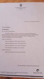 El Juzgado de Faltas no actúa y la damnificada cuenta que en su peregrinar ha podido enterarse que hay por lo menos “una decena de casos similares” al suyo también sin continuidad. Buffone no deja de remarcar la buena atención de las empleadas de las oficinas “pero ellas no pueden solucionar nada, acá depende de altos funcionarios y del juzgado. La responsabilidad del cumplimiento de la ordenanza corresponde al Juzgado de Faltas”.
