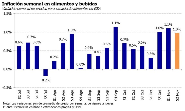 Desde EcoGo la proyección es aún más pesimista y ubica el IPC en 2,5% mensual para noviembre, aunque aclaran que el dato es aún preliminar.