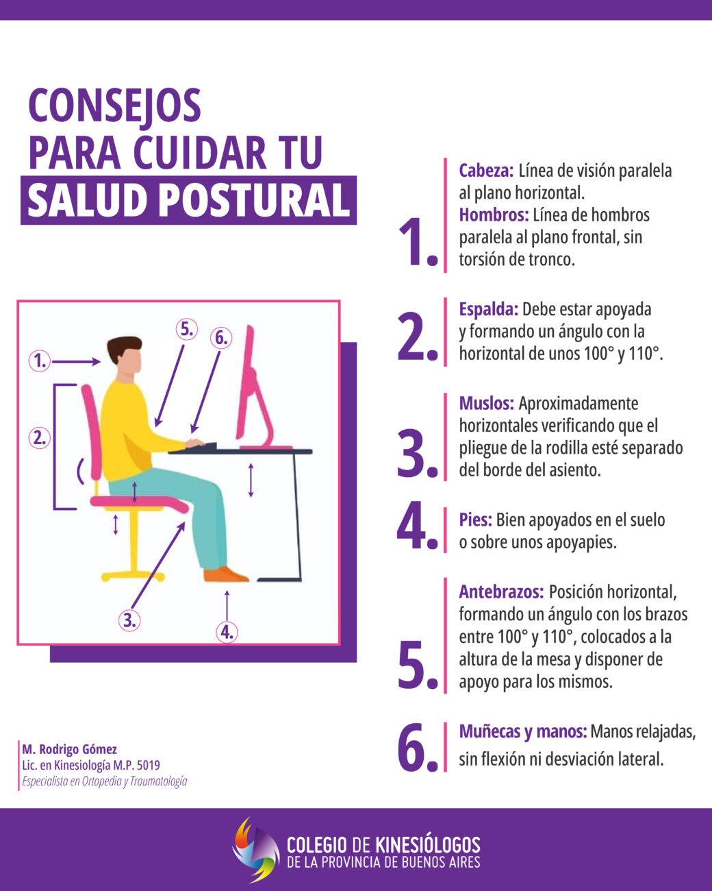 Para Rodrigo Gómez, Licenciado en Kinesiología con especialización en Ortopedia y Traumatología, hay que trabajar en la salud postural desde tempranas edades ‘’acompañando el desarrollo psicomotriz de los niños. Es importante contar con una adecuada enseñanza del movimiento’’ mencionó y agregó que ‘’por eso la recomendación de hacer actividad física. Esta es beneficiosa para nuestra postura y, la que uno realice, tiene que ser reconfortante para la persona’’.