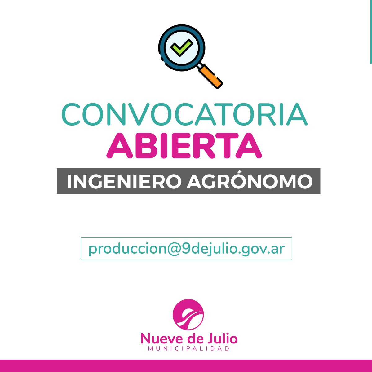 La subsecretaría de Producción de la Municipalidad de Nueve de Julio lanza una convocatoria abierta de Ingeniero Agrónomo para fiscalizar aplicaciones de agroquímicos.
