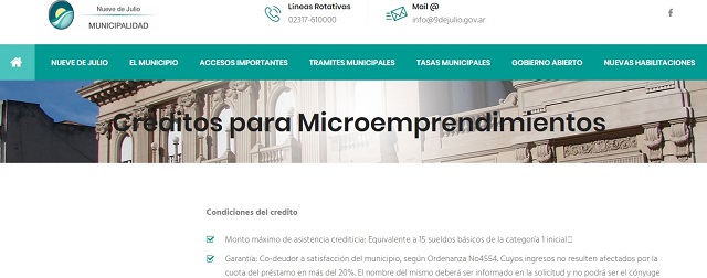 La Municipalidad de Nueve de Julio, a través de la Subsecretaría de Producción, posee vigente un interesante sistema de Créditos para Microemprendimientos productivos, con las siguientes condiciones: