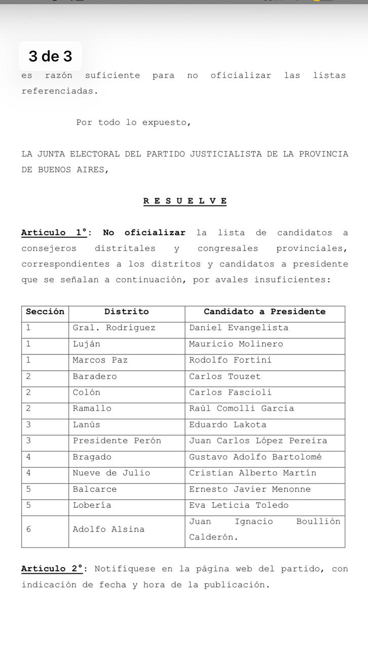 Este viernes, la Junta Electoral del Justicialismo bonaerense oficializó la lista camporista que tiene a Augusto Ippoliti como candidato a presidir el PJ local y, no oficializó la otra, la que agrupaba a gran parte del justicialismo local, con Cristian Martín como cabeza, por “avales insuficientes”.