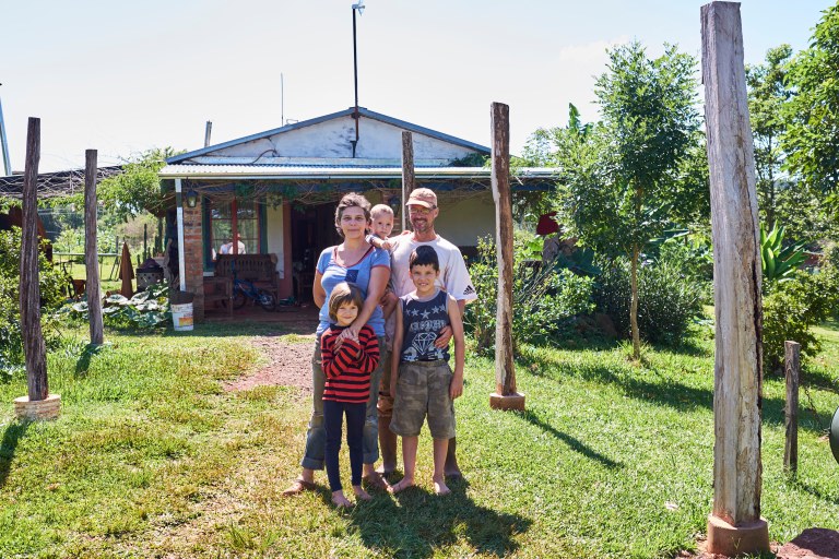 Javiera, Reto y sus tres hijos viven desde hace diez años en la ciudad de Oberá, provincia de Misiones. “Abrimos las puertas de nuestro emprendimiento, “Granja La Lechuza”, para brindar una experiencia turística agroecológica, con la idea de ser productores de alimentos. Tenemos un pequeño restaurante de campo, donde se ofrece lo que brinda nuestra huerta, lo hacemos generando consumidores comprometidos apuntamos a que las personas “coman sano y soberano” cuenta esta Argentina trotamundo que hoy deja huellas en el suelo colorado.
