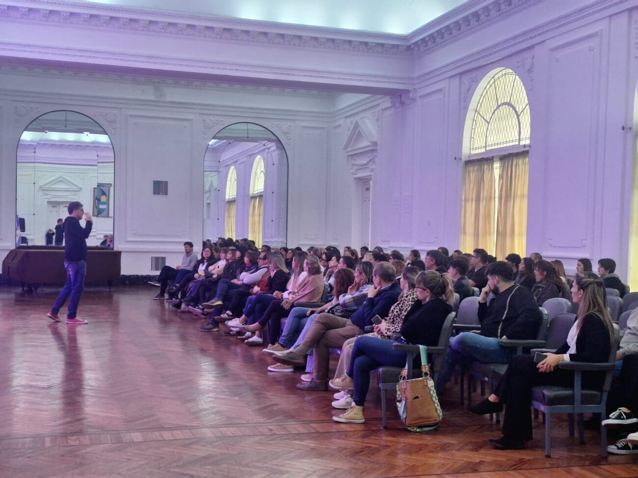 En esta oportunidad, ante un amplio auditorio encabezado por la Intendente Municipal, María José Gentile, junto a miembros de su Gabinete; autoridades educativas, docentes, profesionales, padres y vecinos, el ex basquetbolista de la vecina ciudad de Junín, disertó sobre las adicciones y su vinculación directa con la comunicación: el habla y la escucha; partiendo de la base que la primera causa en esta problemática es la falta de información.