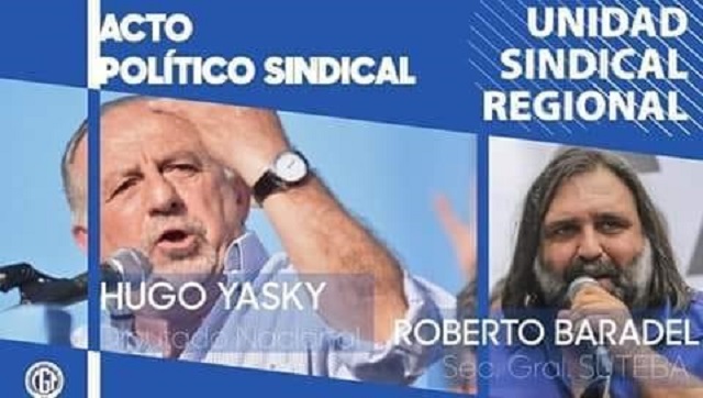 Este martes a las 19 en el Club Mariano Moreno de la ciudad de Junín, Chile y Winter se desarrollará un encuentro político y sindical promovido por la unidad sindical regional. El mismo tendrá como oradores principales a Hugo Yasky titular de la CTA de los Trabajadores y de Roberto Baradel, titular de SUTEBA.