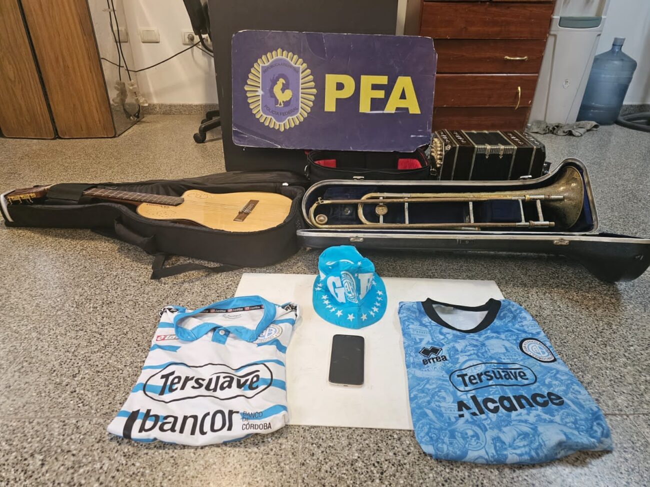 Como resultado del mismo, se procedió al secuestro del bandoneón y del trombón como así también de una guitarra tipo española con su estuche, mientras que el propietario de la casa, un hombre argentino de 65 años, fue notificado de la causa. Además, se secuestró el teléfono celular e indumentaria vinculada al Club Atlético Belgrano de Córdoba.