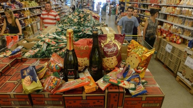 Además, se basa en los productos de la típica mesa navideña como el Pan Dulce ($181,89), budín con frutas ($108,09), garrapiñada ($48,99) y turrón ($60,99). Para el brindis, se basó en un espumante de ananá de $99 y una sidra de $69.