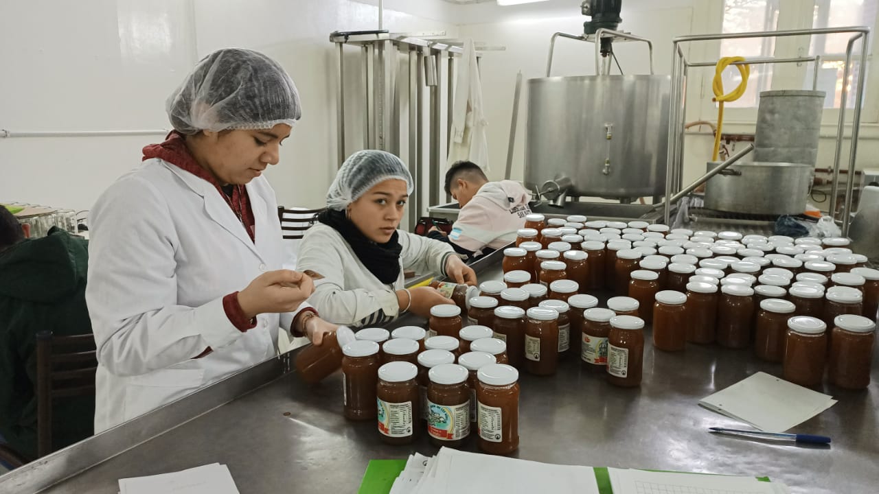 Los alumnos cursan durante la mañana y por la tarde realizan las prácticas en el campo. En cuarto año acceden al sector industrial: conservas, lácteos, elaboración e industria: “En este sector somos tres, Valeria y Ariel, quienes son personal no docente y me acompañan en la tarea productiva. No solo aprenden sino que viene después sobre la elaboración de una mermelada o conserva sino que se trabaja sobre la teoría de producción, concluyendo con la elaboración y la limpieza del sector: su abordaje es total. Luego ellos se llevan el producto terminado a la casa para compartir con su familia. Es el aprender haciendo, y aquí lo materializamos entre todos”, reconoce la profesora Bilesio.
