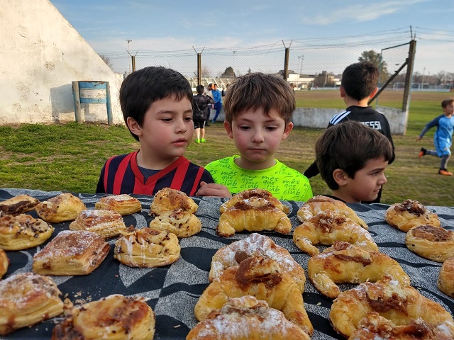 Finalmente y luego de la extenuada tarea del juego, los niños del club cerraron la tarde con una merienda a base chocolate con leche y facturas.
