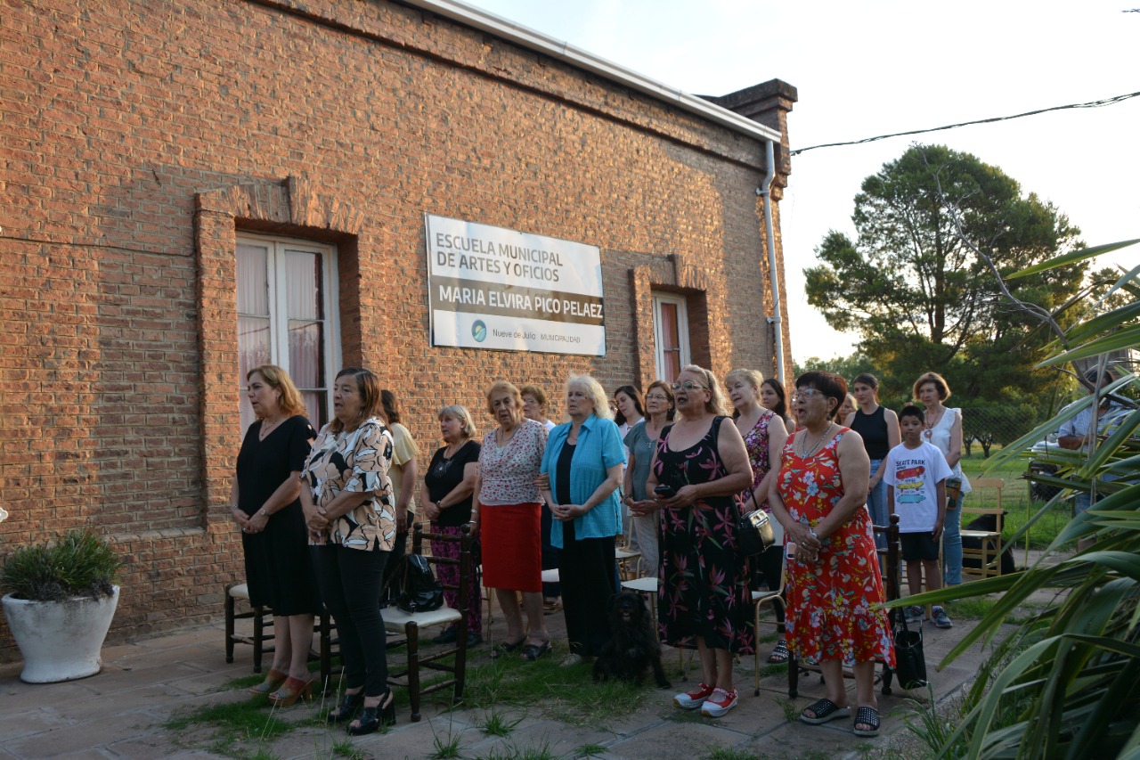En la tarde de ayer, la secretaria de Cultura, educación y Deportes de la Municipalidad de Nueve de Julio, Julia Cereigido; acompañada de la Directora de Educación, visitaron la Escuela Municipal de Artes y Oficios “María Elvira Pico Peláez” de la localidad de Dudignac, donde participaron del acto de fin del ciclo lectivo 2022 de este establecimiento, donde se entregaron certificados a los alumnos; mientras que posteriormente al acto protocolar, recorrieron la muestra de los trabajos realizados a lo largo del calendario, junto a la directora del establecimiento, Nana Enrico.