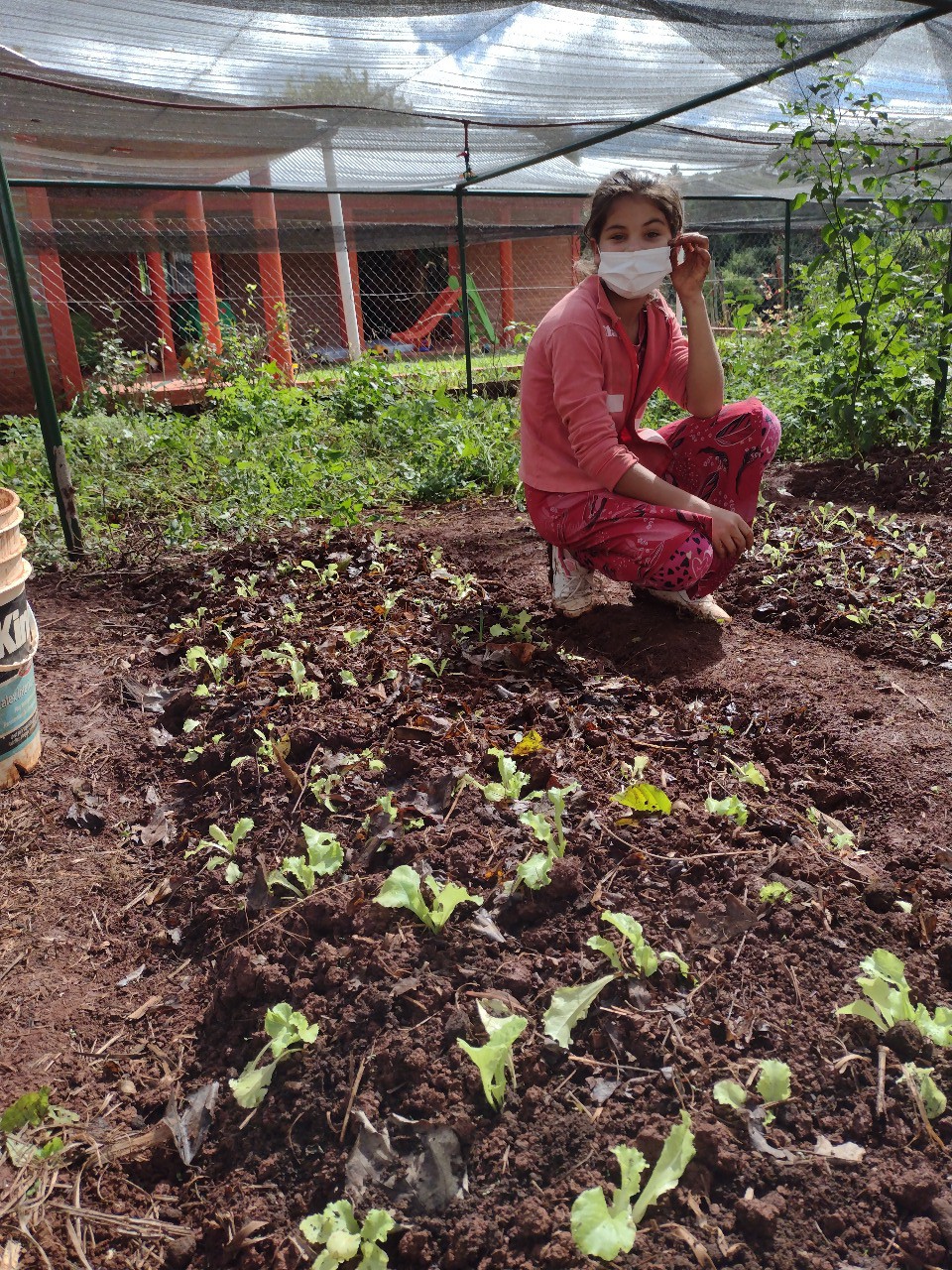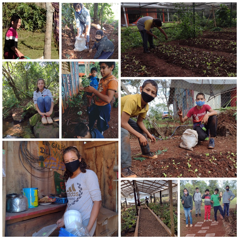 Alejandra Rosario Rosi  es la maestra de huerta, es misionera y junto a un grupo de maestros, directivos y la comunidad educativa que colaboran, llevan adelante esta escuela. Me comenta que la huerta es un espacio en donde se intenta que los chicos forjen vínculos de respeto, cariño y fraternidad con ellos y el entorno. La finalidad es la de producir meramente  un espacio de creación donde la valorización de los conocimientos de las diferentes áreas y contenidos pedagógicos adquiridos, sean los pilares para construir un proyecto institucional en respuesta a las acciones surgidas desde las propias realidades de los pequeños que transitan la ruralidad.
