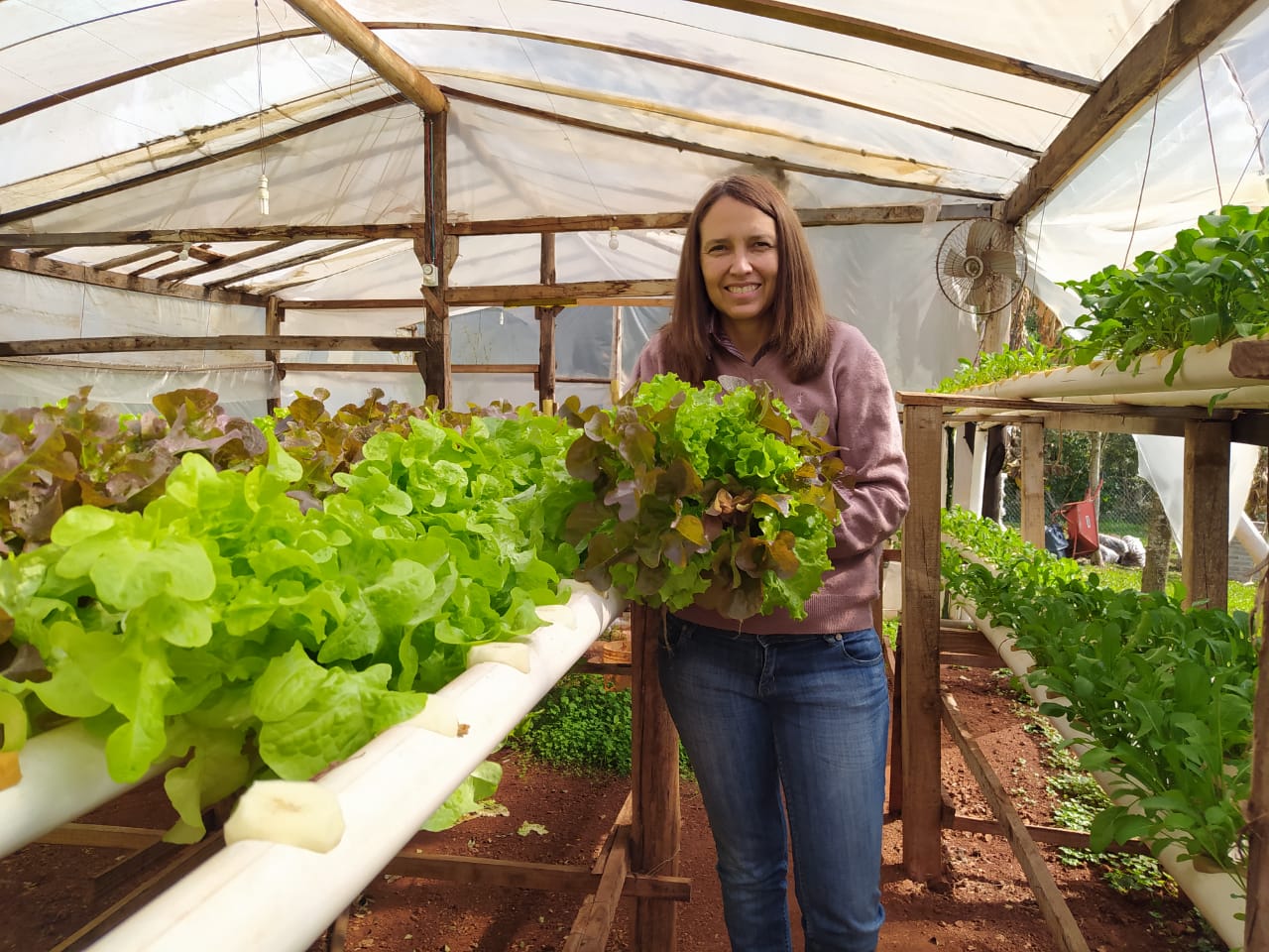 “Nosotros no nos  reinventamos en pandemia, buscamos una alternativa para seguir adelante” esas fueron las palabras más significativas en mi charla con Raquel Rodríguez. Su vida no dio un giro a partir de la pandemia, ella transitaba un camino, que de seguro era por la senda donde hoy está. Raquel junto a su esposo Rodolfo Vega y sus hijas son una familia de productores de verduras en hidroponia, tienen un invernadero en su chacra en una localidad Leandro N Alem de la provincia de Misiones.  La producción es bajo ese proceso convirtiéndose en un reto aún más significativo debido al manejo de insumos, herramientas y maquinarias que no son de la agricultura convencional. Producen distintas variedades de lechugas como la criolla tradicional, morada, mantecosa y criolla roble. También rúcula y otras hojas verdes que llegan a la mesa de sus vecinos con gran aceptación. Su  trabajo es a pulmón y este equipo desde el inicio  afronta distintas situaciones de prueba y error hasta entender el proceso de este tipo de cultivo y la dedicación que se le da, ya que la asistencia y cuidado deben ser permanentes.  Al principio  hacían unas 300 plantas pero no lograban una continuidad en la productividad y tampoco en la venta. El primer paso fue el invernadero y comenzar a plantar sistemáticamente logrando que en unas semanas también comenzarán  a cosechar sistemáticamente. Si bien, una de las ventajas de este tipo de producción es la durabilidad de la planta una vez cosechada, la venta y empaquetado no les fue nada fácil. La producción está destinada en la gran mayoría a la venta local y se distribuye entre ventas en bolsones, en verdulerías o a la venta al por menor.