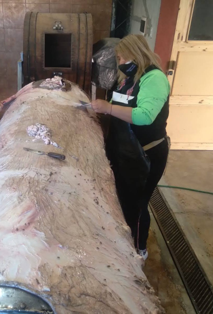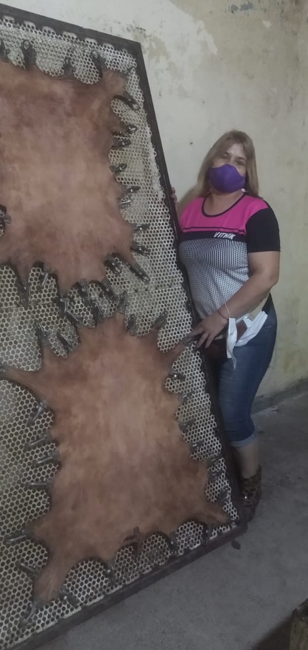 Actualmente lidera el proyecto Curtiendo nuestras raíces: “el 80 % del cuero en Argentina se tira, el resto se exporta; entonces esta iniciativa fue pensada para fomentar el uso de los cueros de los animales, enseñándoles a los jóvenes que tienen una valiosa materia prima en su hogar, que la pueden trabajar disponiendo de una hermosa salida laboral. Cuando empecé a hacer los relevamientos en el campo, la gente carneaba los cabritos para comer pero el cuero era desperdicio. Entonces recordaba a mi padre trenzar el cuero y a mi madre poniéndolo en cal. Son técnicas ancestrales que no utilizan cromo para curtir el cuero, generando una conciencia social y ambiental”, informa.