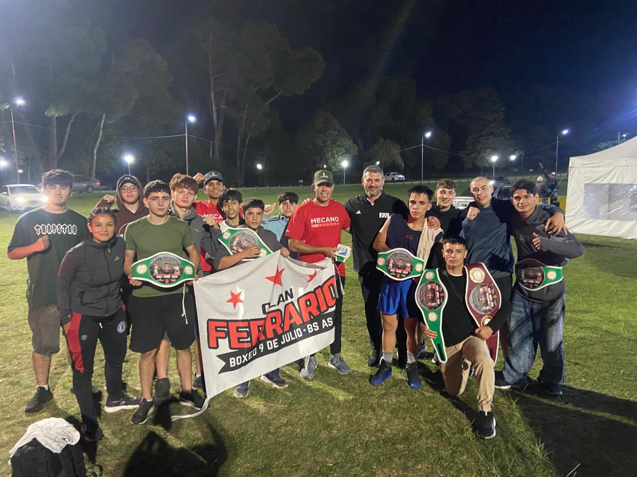 En caravana, con la combi municipal a pleno más cuatro autos, el contingente del Clan Ferrario llegó el sábado a Pigué para disfrutar de una vibrante noche de boxeo marcada por el debut de jóvenes talentos que, además, tuvieron en el rincón a Elías Pino acompañado de “Panterita” Rodríguez, una presencia que les sirvió de estímulo.