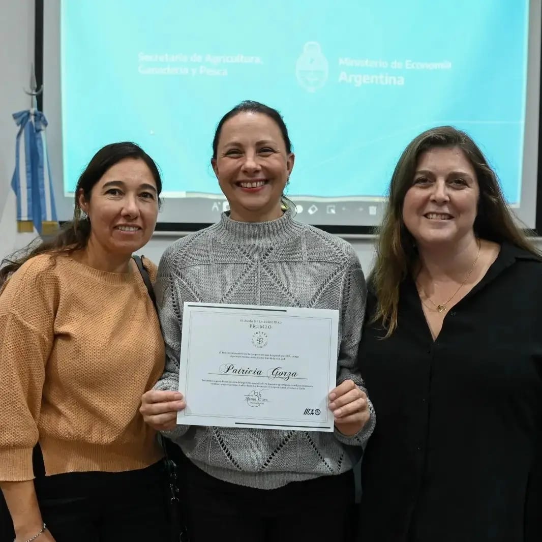 Patricia Gorza junto a los premiados recibieron sus diplomas de manos de Juan José Bahíllo, secretario de Agricultura, Ganadería y Pesca de la Nación, y de Manuel Otero, director general del IICA. La entrega se realizó durante un acto que tuvo lugar en la sede de la Secretaría el 18 de abril de 2023 en la Ciudad de Buenos Aires. También participaron en el acto el subsecretario de Relaciones Internacionales e Institucionales de la provincia de Buenos Aires, Mario Oporto; la Embajadora de Costa Rica en Argentina, Ginette Campos Rojas y familiares de los premiados.