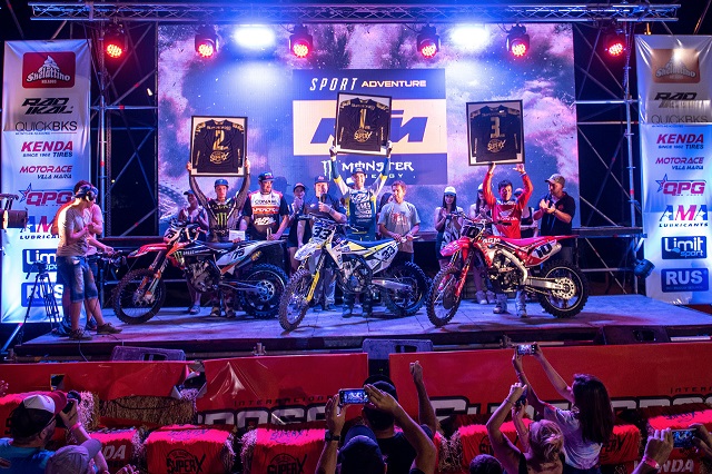 Si hubo una noche de pleno regocijo para los espectadores fue la del domingo. Agustín Poli y Joaquín Poli abrieron el manual de manejo y maniobras de un supercross para ponerlo al servicio de los aficionados. El menor de los Poli Brothers fue campeón con puntaje perfecto, ganó sus cuatro series y las cuatro finales. Pero tuvo siempre como amenaza a su hermano Joaquín quien buscó recortarle distancia pero se le tornó casi imposible. Pelearon, se sobrepasaron en reiteradas ocasiones, siempre tratando de evitar los toques pero al límite. Las tribunas no paraban de alentar y aplaudir semejante muestra de coraje y talento. La carrera terminó con Agustín primero, Joaquín como escolta y Rodrigo Landa, de una gran tarea, en tercer puesto. El campeonato iba a sumar en el podio a Juan Pablo Luzzardi quien concluyó en el puesto tres del certamen.