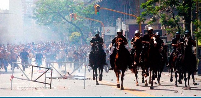 La reacción popular no se hizo esperar. Miles de personas comenzaron a salir a las calles de las principales ciudades haciendo sonar sus cacerolas. En Buenos Aires se dirigieron a la Plaza de Mayo pidiendo la renuncia del Ministro Cavallo. Cuando la concentración colmó la Plaza, cumpliendo órdenes del presidente, el ministro del Interior, Ramón Mestre, ordenó a la policía federal reprimir a la multitud con gases lacrimógenos. Sectores importantes se dispersaron para volver a reunirse frente al Congreso nacional donde también los alcanzó la feroz represión policial que se cobró las primeras víctimas de la rebelión contra un gobierno completamente deslegitimado por sus medidas antipopulares.