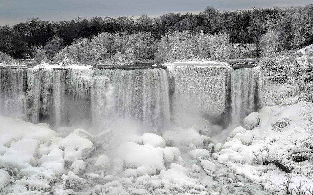 Las Cataratas del Niágara, uno de los saltos de agua más caudalosos del mundo, han ofrecido este martes una postal de inmovilidad aparente tras el impacto de una tormenta ártica que ha desplomado los termómetros en la frontera entre Canadá y Estados Unidos. Con temperaturas que han oscilado entre los -12 y -21 grados Celsius, y una sensación térmica que ha rozado los -30 grados, el paisaje se ha transformado en un desierto de estructuras de hielo de hasta diez pisos de altura.