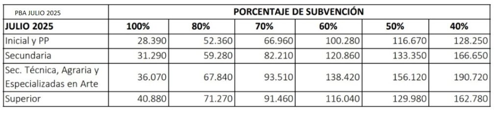 La última actualización dispuesta por la Dirección General de Escuelas y Cultura provincial había sido del 3% para el mes de abril. Según informó la Asociación de Institutos de Enseñanza Privada de la Provincia de Buenos Aires (Aiepba), “el porcentaje dispuesto en esta ocasión coincide con la mejora que el Gobierno bonaerense adjudicó a los docentes en el marco de la paritaria y que alcanza a los educadores que se desempeñan en el ámbito del sistema privado de enseñanza”.