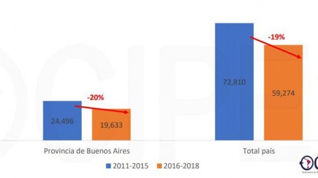 El promedio de las exportaciones bonaerenses entre 2011-2015 fue de 24.000 millones de USD, mientras que entre 2016 y 2018 fue del orden de los 19.000 millones.