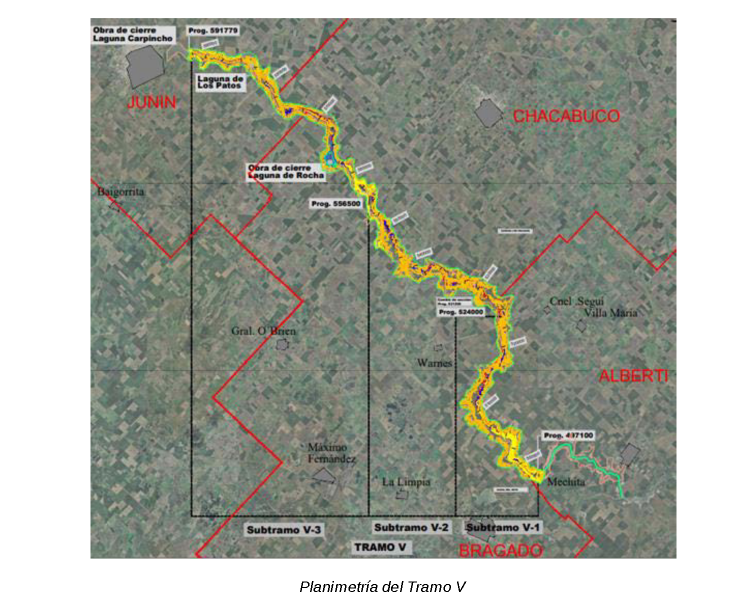 La obra en cuestión abarca unos 100 kilómetros de cauce y va desde Junín hasta Alberti, pasando por Chacabuco y Bragado. la idea de esta nueva etapa es ampliar “la capacidad hidráulica del cauce, eliminando constricciones y altos fondos”. A esto se le suma la puesta a punto de la infraestructura correspondiente, como los puentes carreteros y ferroviarios, y trabajos de cierre en la Laguna de Rocha. Las tareas demandarán unos 730 días de ejecución, según las estimaciones.(Infocielo)