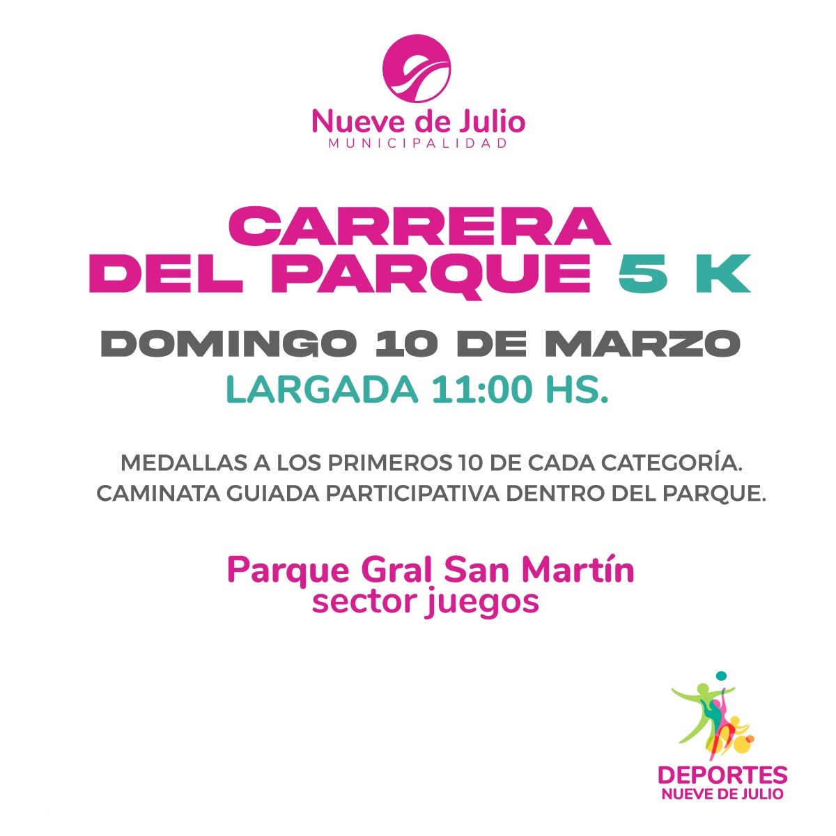 Con la organización de la Dirección de Deportes de la Municipalidad de Nueve de Julio, el domingo 10 de marzo, se realizará la competencia atlética denominada “Carrera del Parque 5 K”.