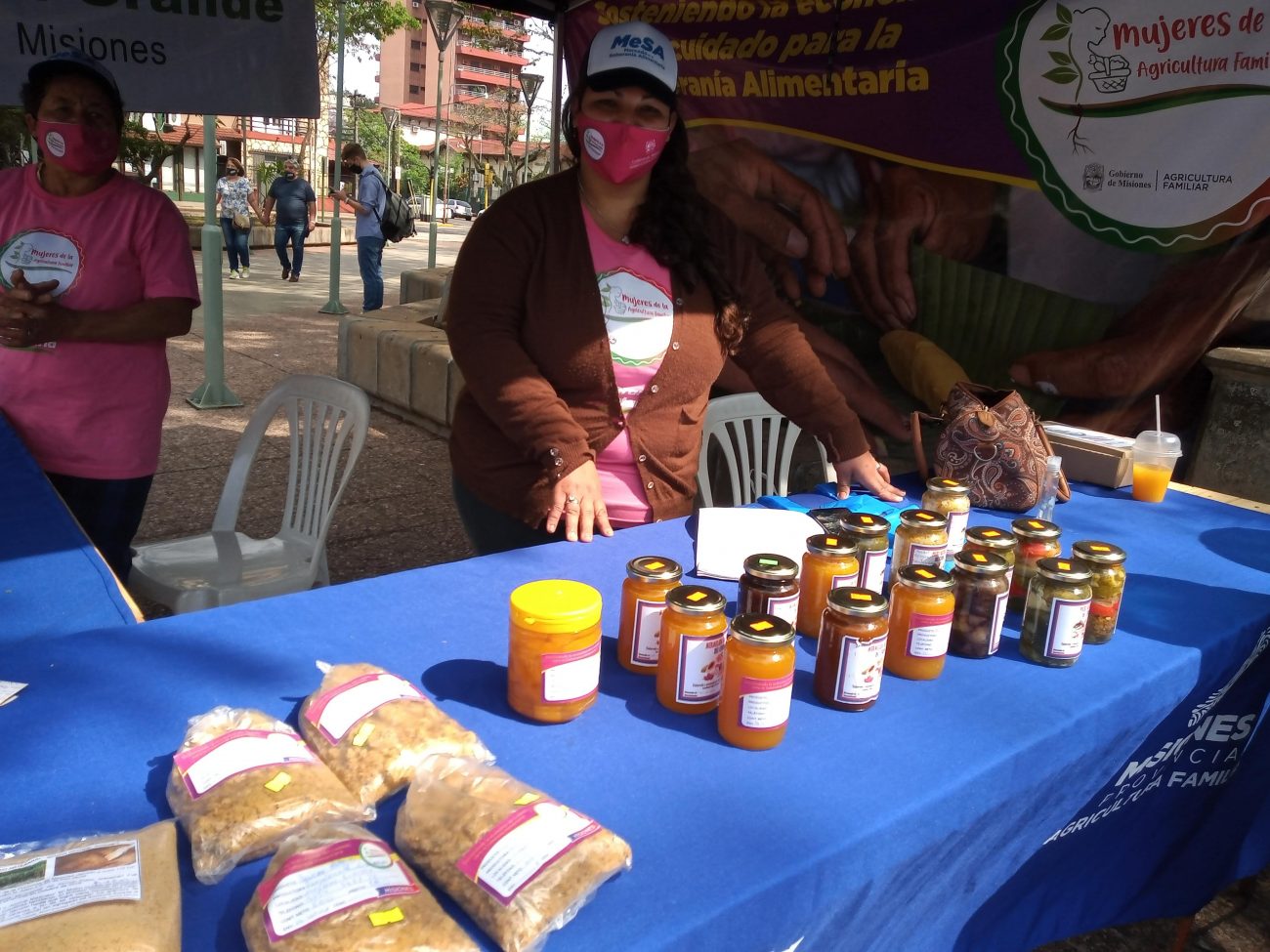 Antes de su llegada a la feria, Andrea tenía a la venta sus productos desde su casa, así es como muchos de sus vecinos se acercaban para adquirir sus conservas y escabeches. Los fines de semana también eran dedicados a la comercialización, ella junto con su esposo ofrecían casa por casa sus conservas y demás productos que les brinda la tierra y los animales que mantienen. Esta mujer joven de menos de 30 años luchó mucho para conseguir todo lo que hoy tiene, el sufrimiento padecido por las distancias en principio para acceder a la educación y seguido en los trabajos, es lo que le hace valorar más su trabajo con la tierra. Andrea junto a sus hijos se da cita todos los sábados en la feria de la localidad de Mojón Grande desde las 8 de la mañana, frente al polideportivo de la ciudad, los 8 feriantes que representan el trabajo de cada familia, ofrecen a la venta su producción. Hace dos meses que ella llega allí con la satisfacción de encontrar un espacio para todos, brindando productos con certificación municipal y con la calidad que ofrecen los pequeños productores locales. Su producción es diversificada, de la chacra obtiene las verduras que cosecha para la preparación de envasados en pickles o escabeches y dulces. Su esposo trabaja exclusivamente en el campo y todo lo elaborado está certificado de manera formal, eso la hace soñar en un proyecto a largo plazo que sea el sostén de la familia.