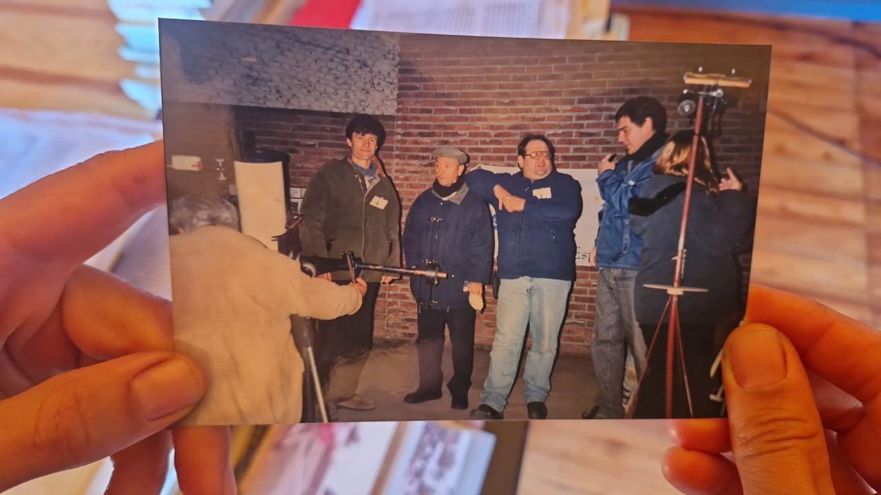 Tomás San Martin, Currum Capriroli, Lasi Secreto, Lisi Bonello, Julián Casal, Roberto Ferrari y Jorge Dolce sin miedo al frío festejando las Bodas de Plata de Amigos del Espacio en la plaza Belgrano
