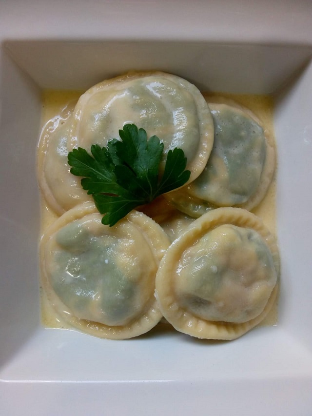 Para seguir evolucionando con en la cocina hoy les trigo la receta de estos sorrentinos con masa impresa con perejil y rellenos de queso y jamón con espinaca. Una delicia.
