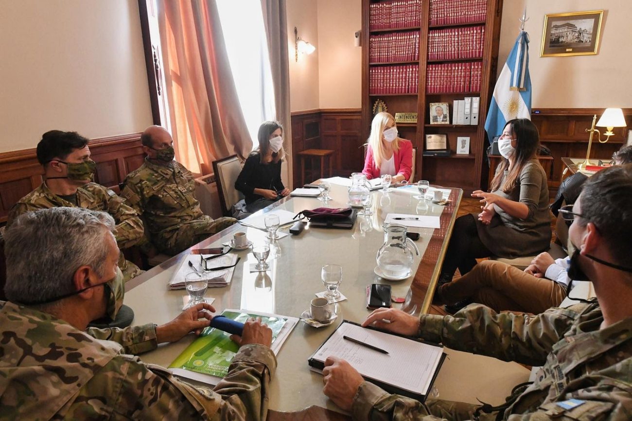Durante la reunión se definieron lineamiento generales del trabajo coordinado y solidario que vienen desplegando la cartera de Defensa y el Ejército en distintos distritos del conurbano y el interior provincial.