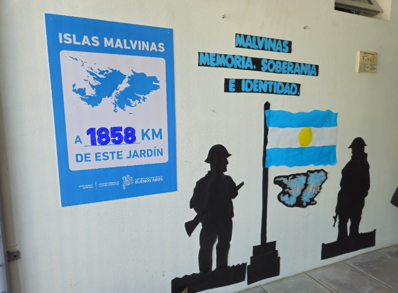 Como parte del acto, se descubrió el cartel que señala los kilómetros entre la institución y las Islas Malvinas, reafirmando el compromiso con la soberanía desde las primeras infancias.