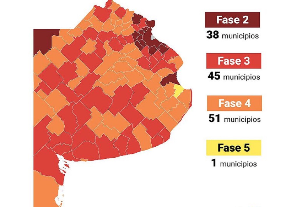 Producto del crecimiento de las últimas dos semanas, también aumentó la cantidad de municipios que estaban en fase 4 y ahora se encuentran en fase 3, entre ellos 9 de Julio.