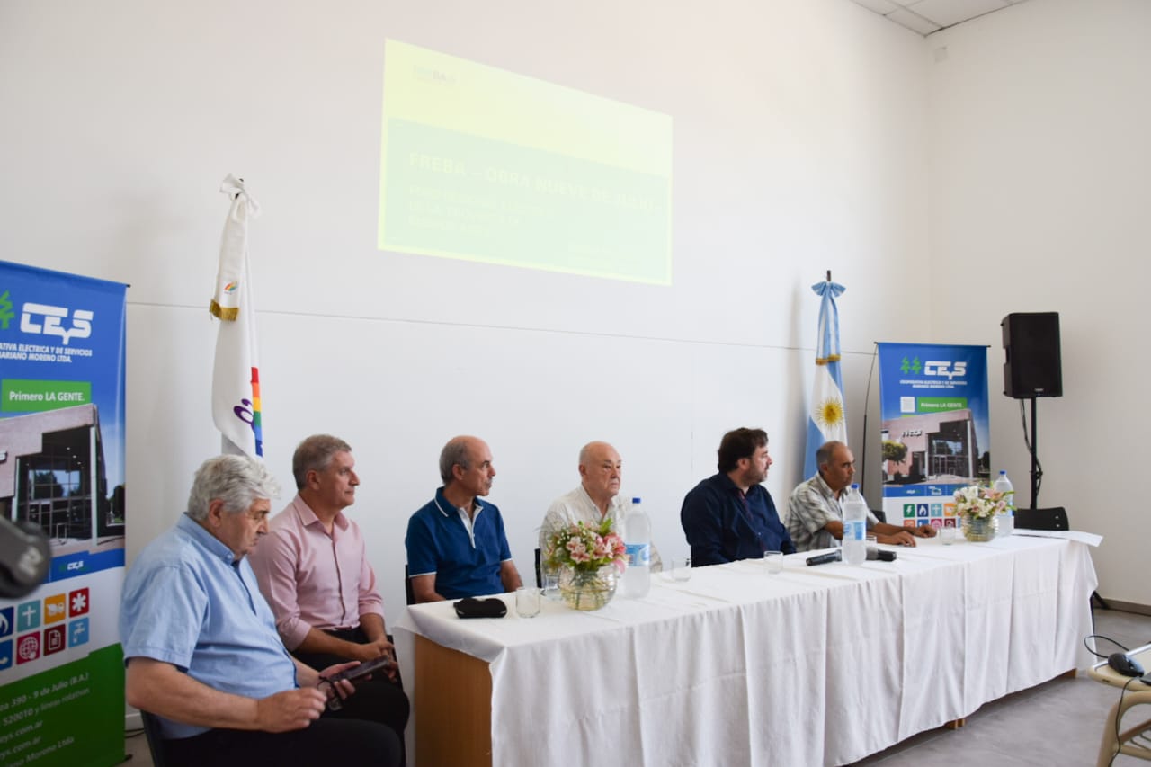 Autoridades del Foro Regional Eléctrico de la Provincia de Buenos Aires (FREBA), en conjunto con integrantes de la Cooperativa Eléctrica de Mariano Moreno y la Secretaría de Energía de la Provincia, luego de firmar días atrás un convenio clave para la construcción de una Línea de Alta Tensión (LAT) entre las localidades de 25 de Mayo y 9 de Julio; fueron recibidas en la mañana de ayer en su despacho por la Intendente Municipal de Nueve de Julio, María José Gentile; junto a autoridades del Gabinete Municipal.