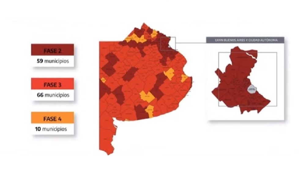El gobierno bonaerense actualizó la situación epidemiológica de la Provincia. Durante la última semana aumentaron un 27% los contagios en el interior. En total ya son 59 los municipios en Fase 2 de los cuales 19 son del interior.