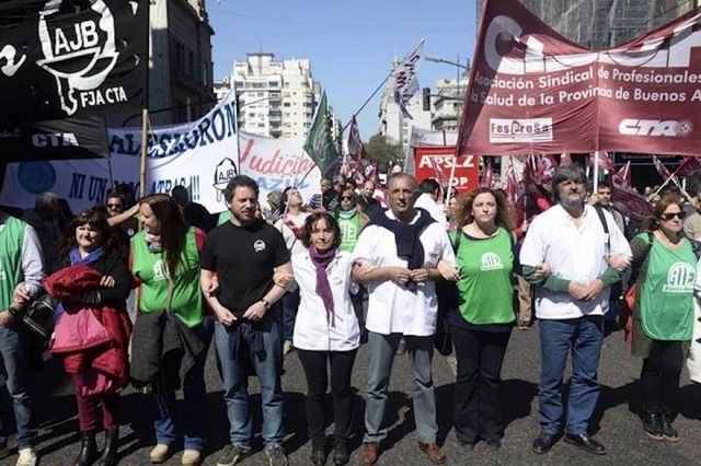 Ahora, al reclamo de los maestros se sumaron los judiciales y médicos. “Reclamamos los 15 puntos de diferencia que hubo entre el 32% que liquidó el gobierno y el 47,6% de inflación que midió el Indec”, sostuvo Pablo Abramovich, titular de la AJB.