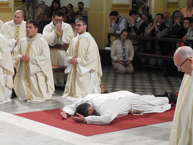 Muy querido José: No puedo dejar de relacionar el testimonio de la primera comunidad cristiana -que nos recordaba la lectura de los Hechos de los Apóstoles- de la ordenación “para el servicio de las mesas”, es decir, de las necesidades de los hermanos, con tu propio camino existencial. Tu entrega al servicio de los ciudadanos en tu paso por la policía, la participación en los grupos scaut, tu espíritu de servicio en los años del seminario, particularmente en la cocina, tu espíritu fraterno con tus compañeros en el centro vocacional Cardenal Pironio y ahora esta dedicación al Hogar de Cristo muestran unos dones, unas disposiciones y capacidades que no quedan de ninguna manera atrás en tu vida, sino que bien podrás integrarlas e incorporarlas para hacer más rico y fecundo tu servicio en muchos sentidos. ¡Que hermoso es ver en estos momentos señalados de la vida, cómo Dios “dispone todo para bien de aquellos que lo aman”.