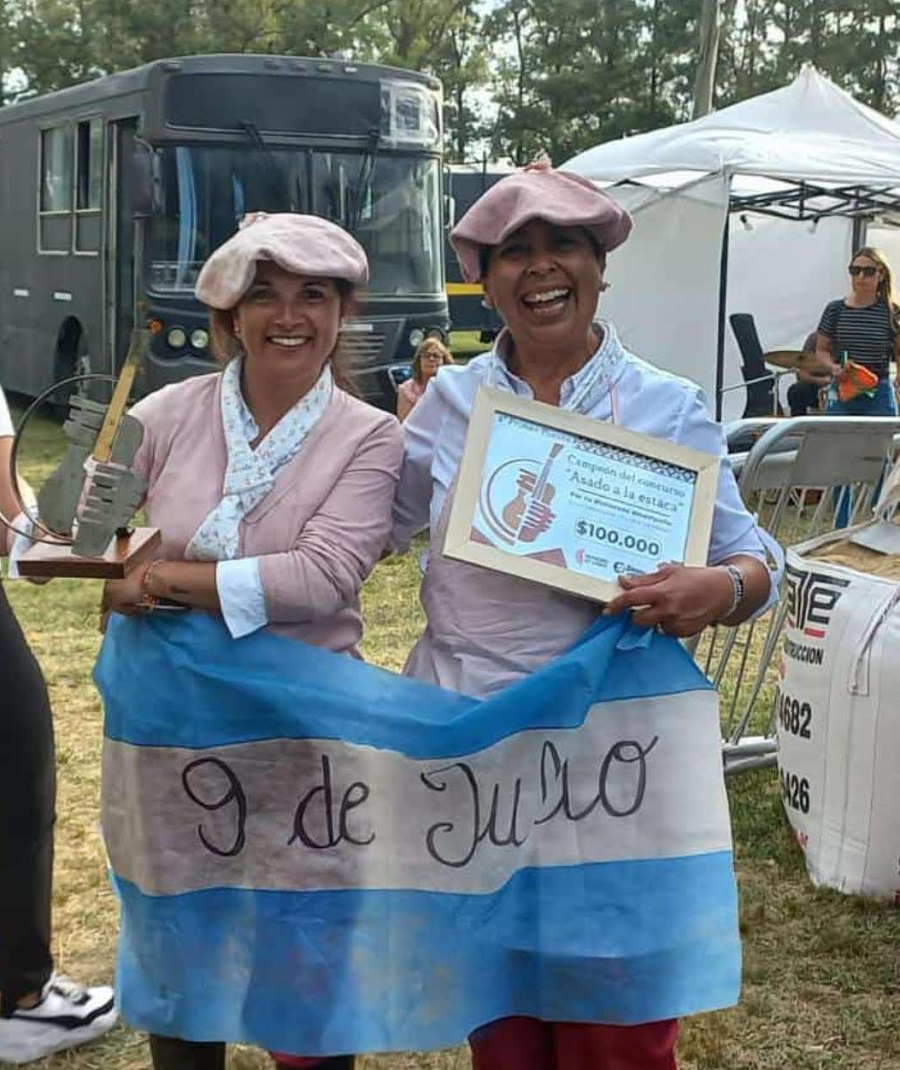 El concurso del Asado en estaca este año tuvo 11 participantes, y fue ganado por dos asadoras de Nueve de Julio, Rosana Zapata y María del Carmen Santillán, de Nueve de Julio, que se presentaron con el nombre de “Sayen”.