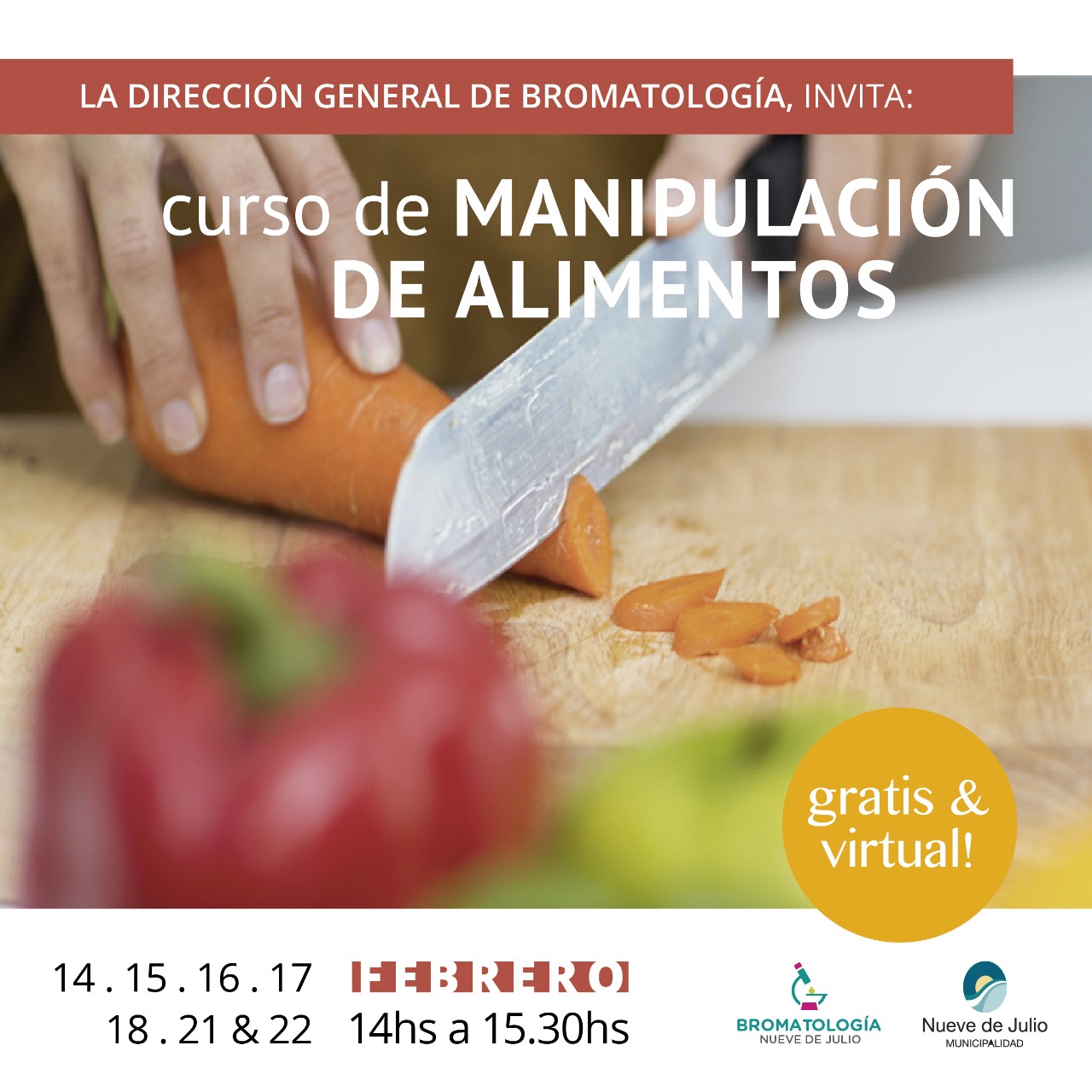 La Dirección de Bromatología de la Municipalidad de Nueve de Julio informa que se encuentra abierta la inscripción para el nuevo curso gratuito de manipuladores de alimentos que se dictará entre los días 14 y 22 de febrero de 14 a 15,30 hs. de manera virtual.