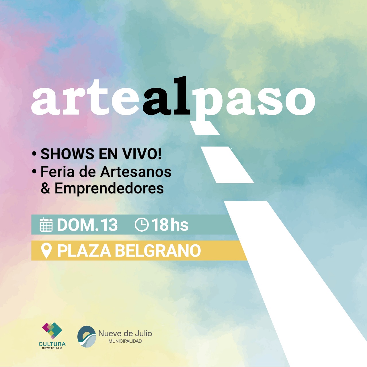 Este próximo domingo 13, desde las 18 hs. en Plaza Belgrano, se habrá de desarrollar un nuevo encuentro del ciclo “Arte al Paso”, con la presencia de artesanos y empñrendedores y shows en vivo.