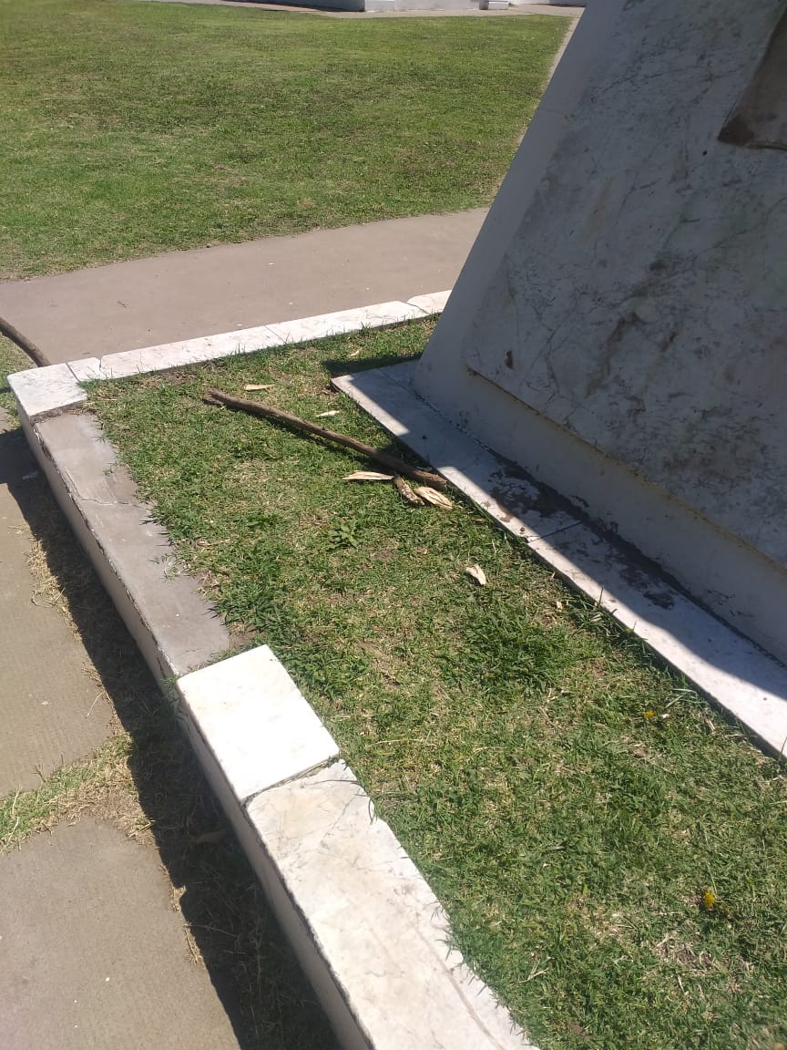La Municipalidad de 9 de Julio informa, a través de la Dirección de Espacios Verdes, que se registró un nuevo acto de vandalismo en espacios públicos de nuestro medio,  en este caso con la sustracción de la placa de bronce colocada hace pocos meses.